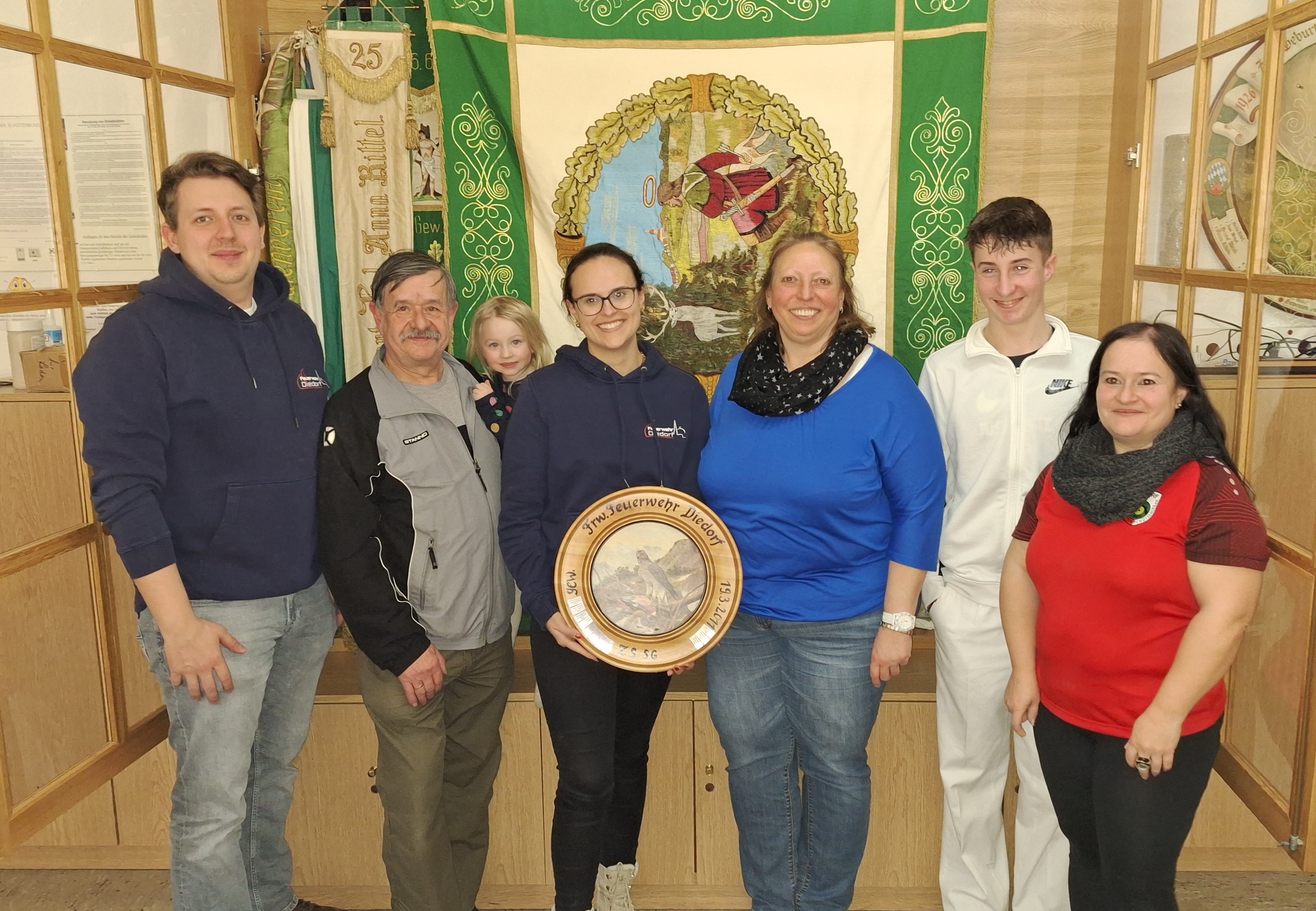 Eines der ersten großen Schießereignisse im Vereinsjahr ist das traditionellen Freundschaftsschießen mit der freiw. Feuerwehr. Unserer Einladung sind wieder viele Hobbyschützen beider Vereine gefolgt. Im vollbesetzten Schützenheim haben wir uns zuerst mit Leberkäse gestärkt, um dann die Wanderscheibe und die beste Mannschaft auszuschießen. Die ZSSG Diedorf hat heuer den Mannschaftspreis gewonnen. Die Wanderscheibe ging diesmal an die FFW Diedorf; gewonnen hat sie Martina Dieminger. Wir gratulieren den Siegern mit einem 3-fachen "Gut Schuß". Allen hat es sichtlich Spass gemacht. Wir freuen uns schon auf den Gegenbesuch bei der kommenden Gautsch.
